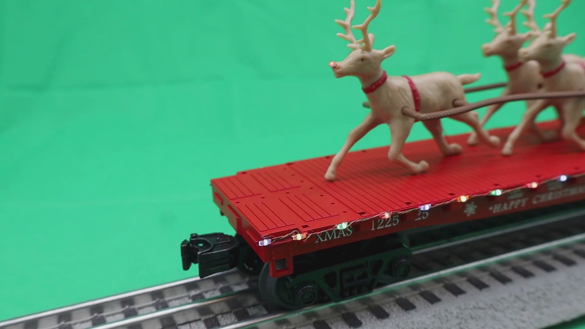MTH 30-76939 - Flat Car "Christmas" #122525 w/ LED Lights, Santa Sleigh & Reindeer
