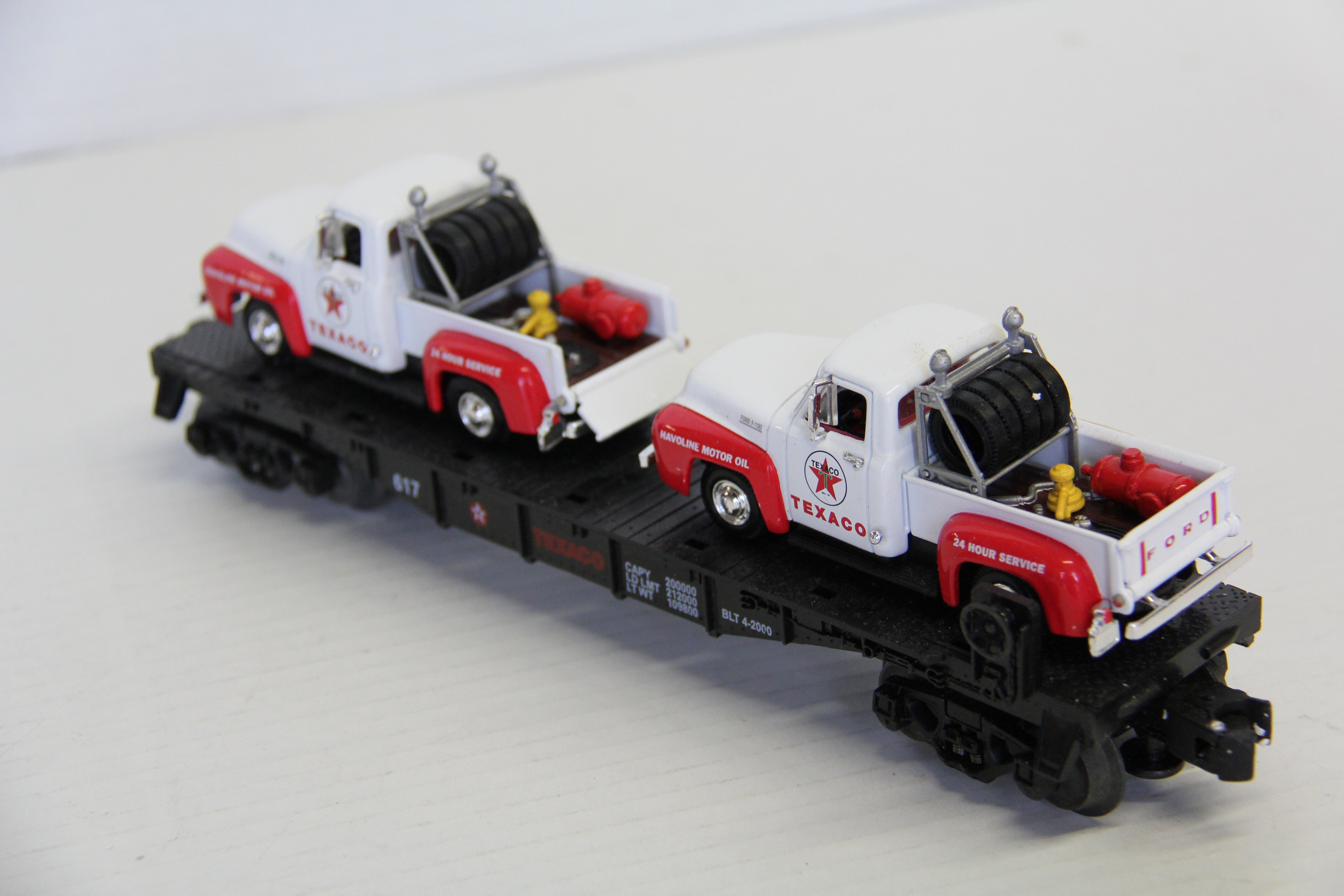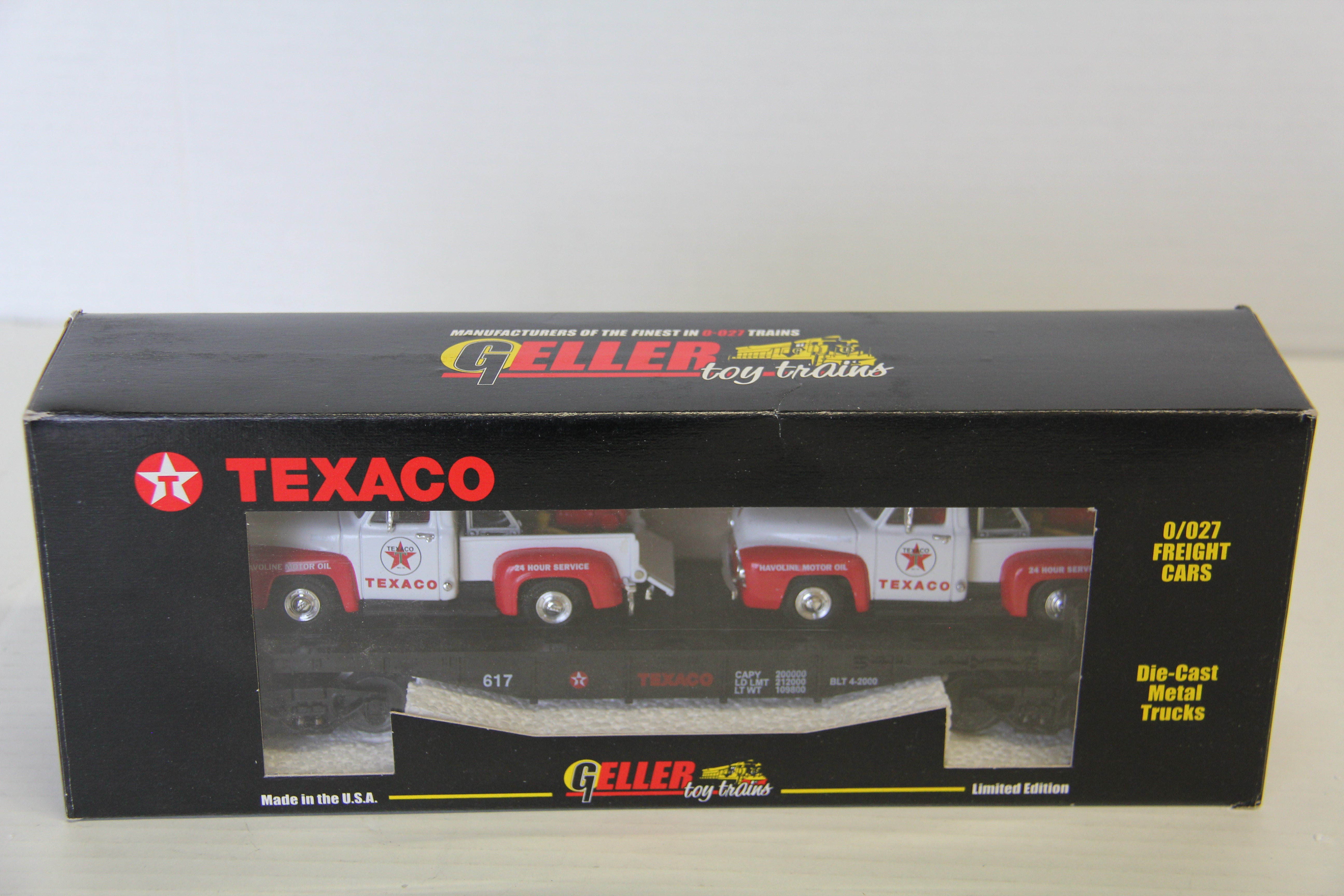 Geller Toy Trains Texaco Die-Cast Flat Car (2) Texaco Tow Trucks-Second hand-M6915